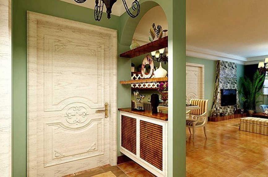 1、玄關通常與客廳或餐廳相連,但與廳的功能有區別,所以要通過裝飾設計進行功能分區。通常采用的方法主要是吊頂、墻面裝飾、地面的材料和色彩等區分或用門套、掛落、屏風、柜子等隔斷。玄關可以是一個封閉、半封閉或全開放的空間,與廳的關系是連而不直達、隔而不斷。